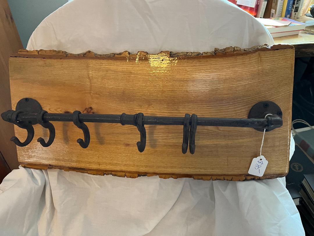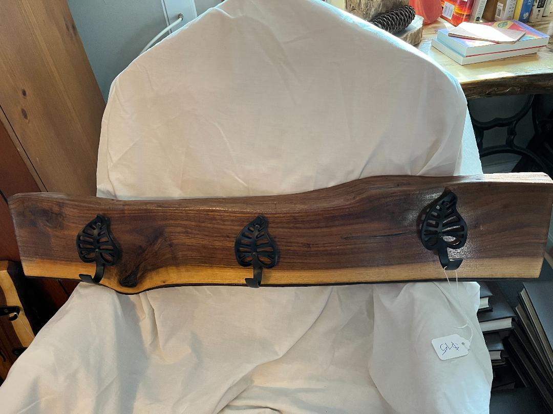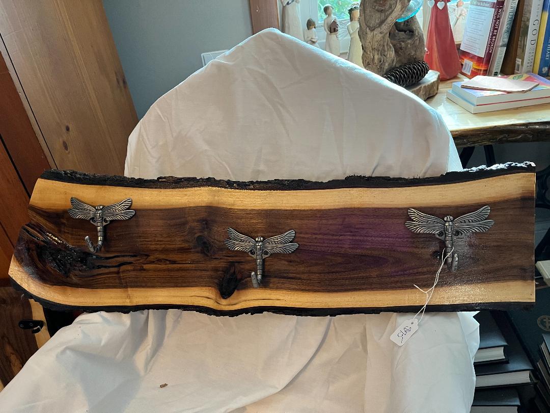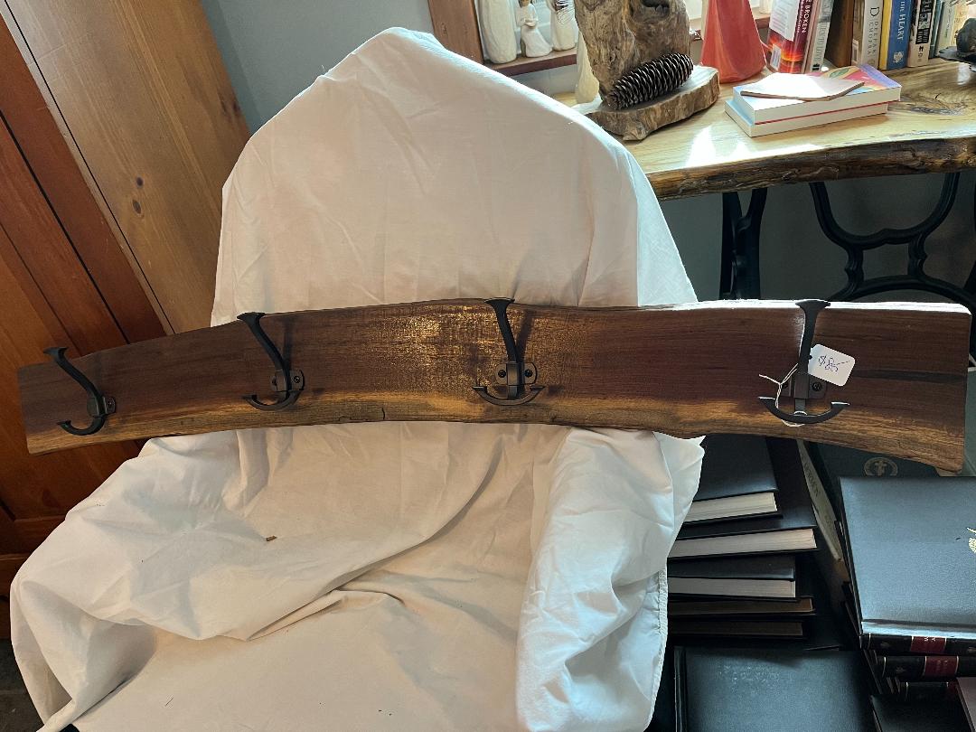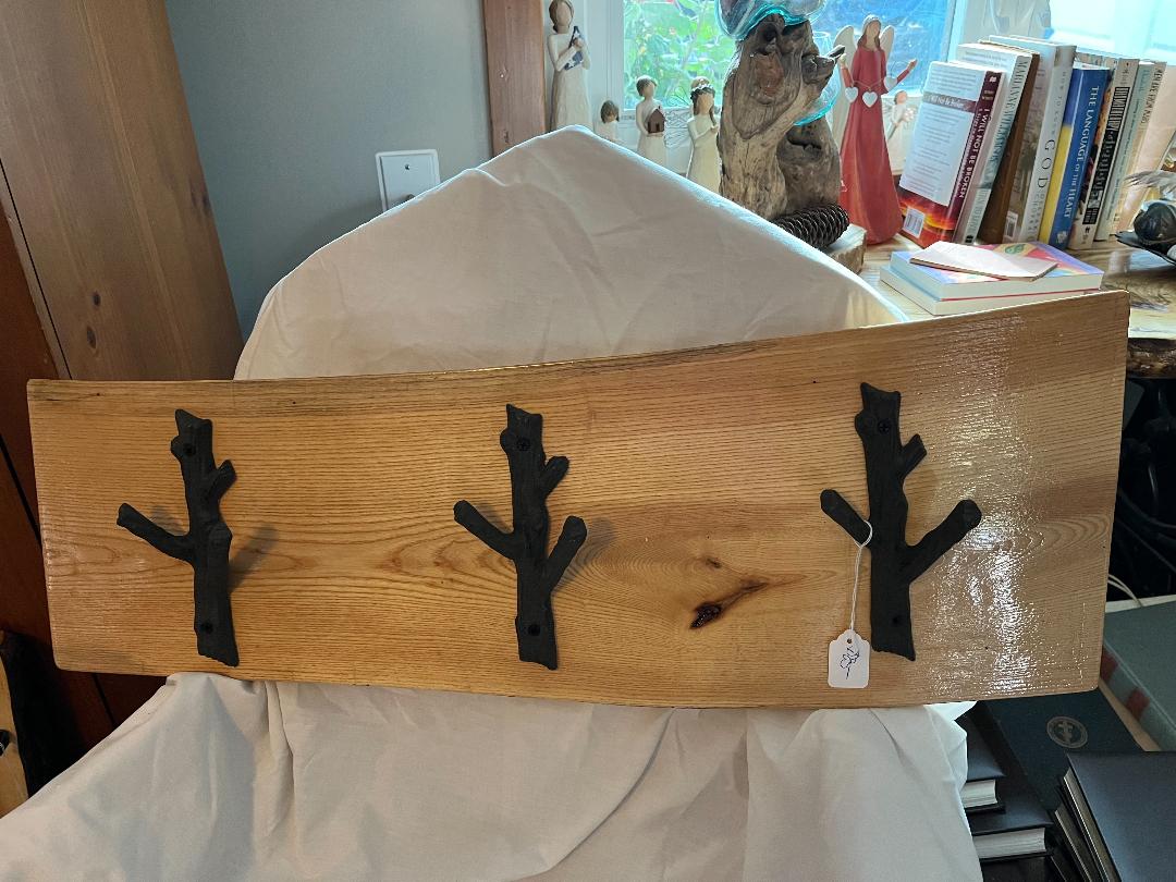 This is a fun piece with moveable hooks. Two pieces on the board. The color of this wood is amazing.