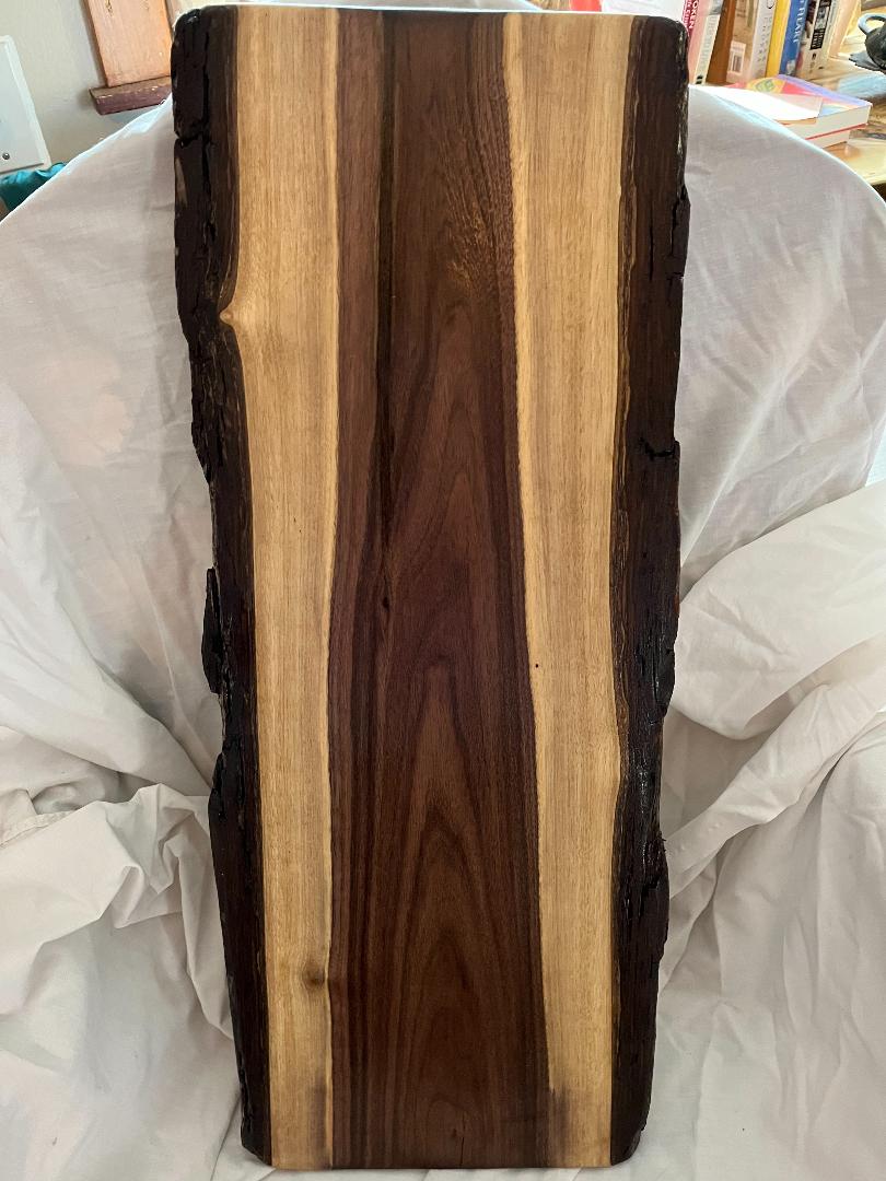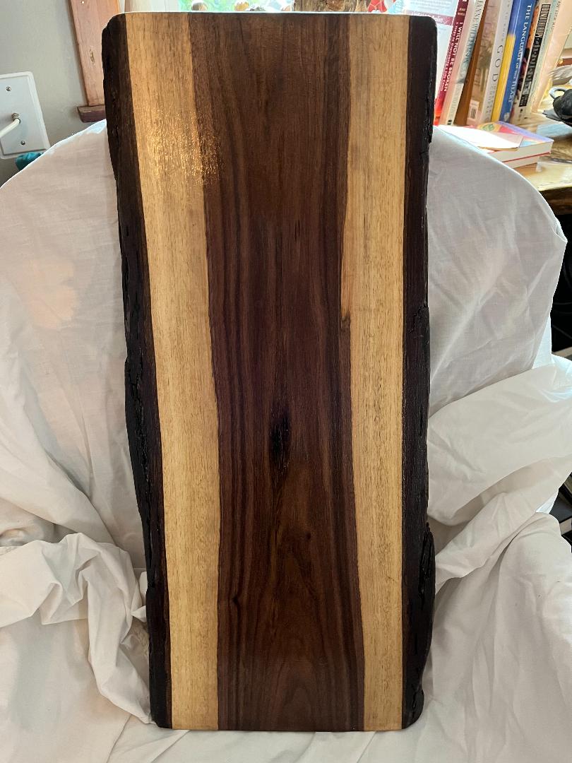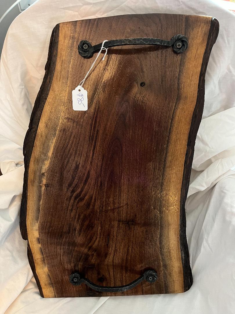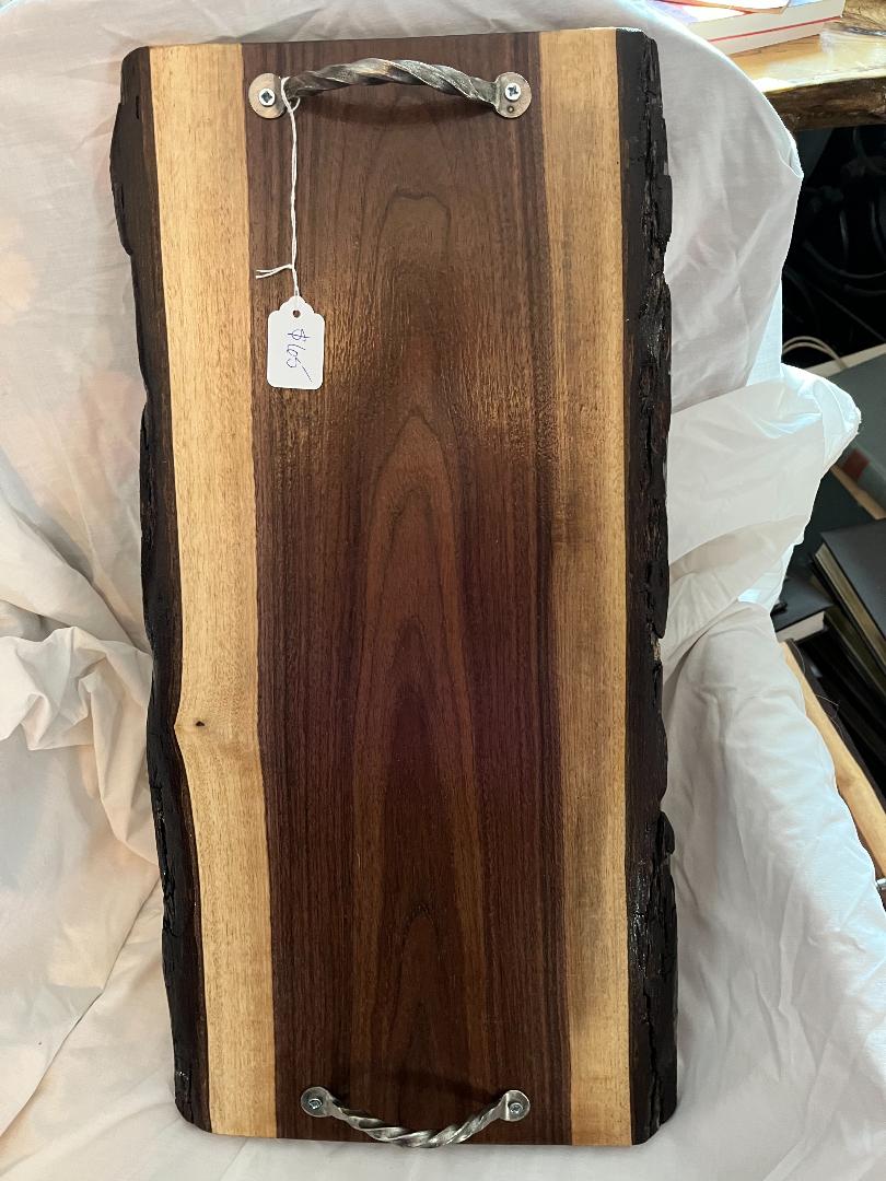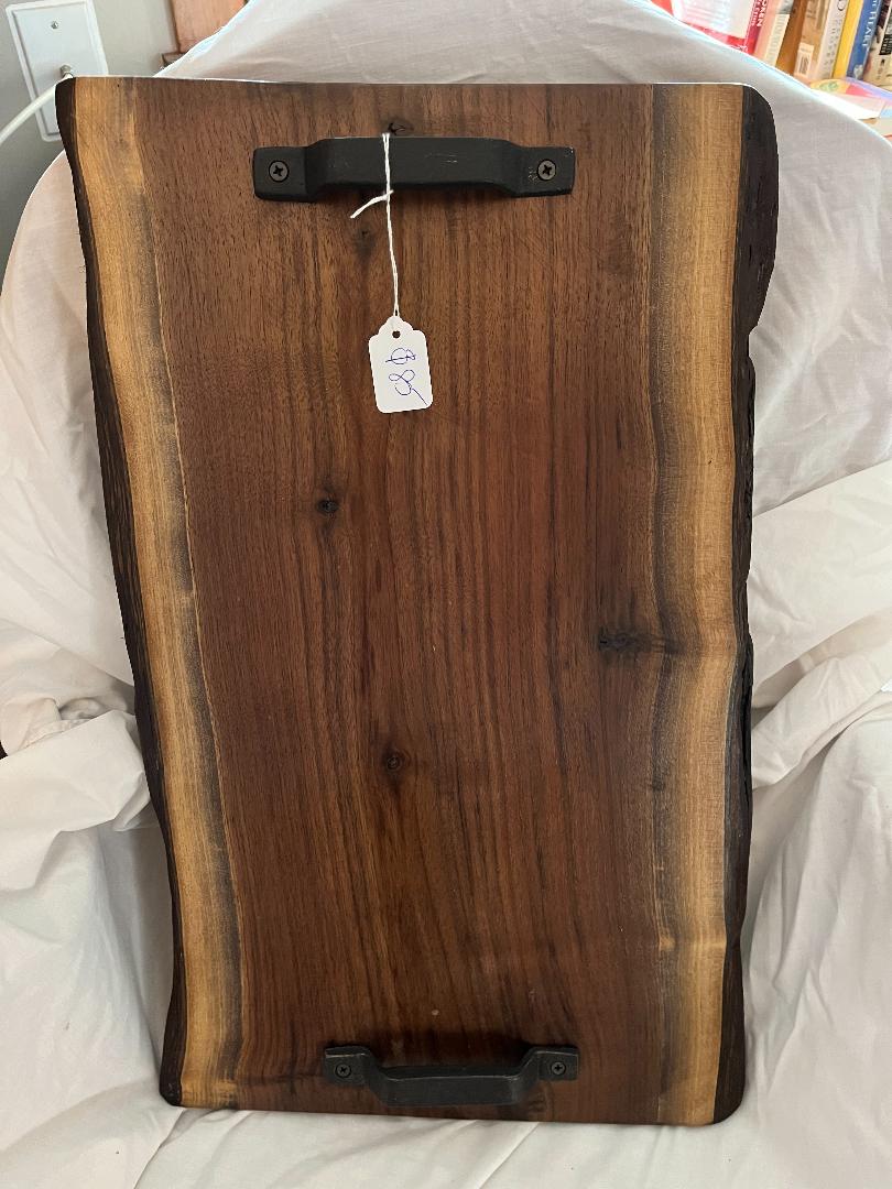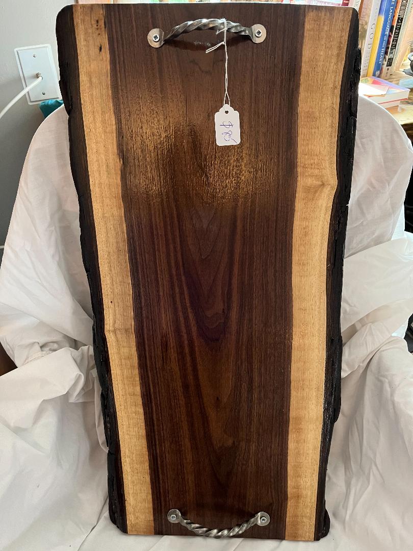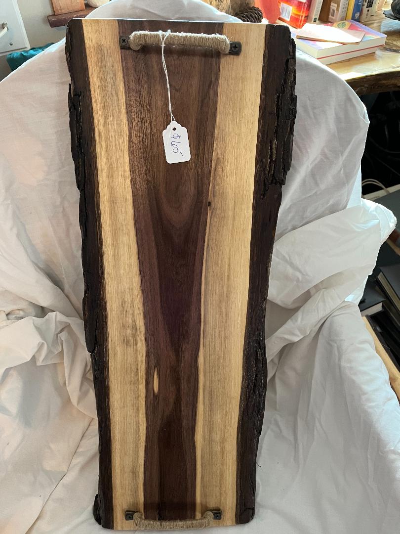 This one is a beautiful piece of walnut with run rope handles. Food safe and ready for your next gathering.